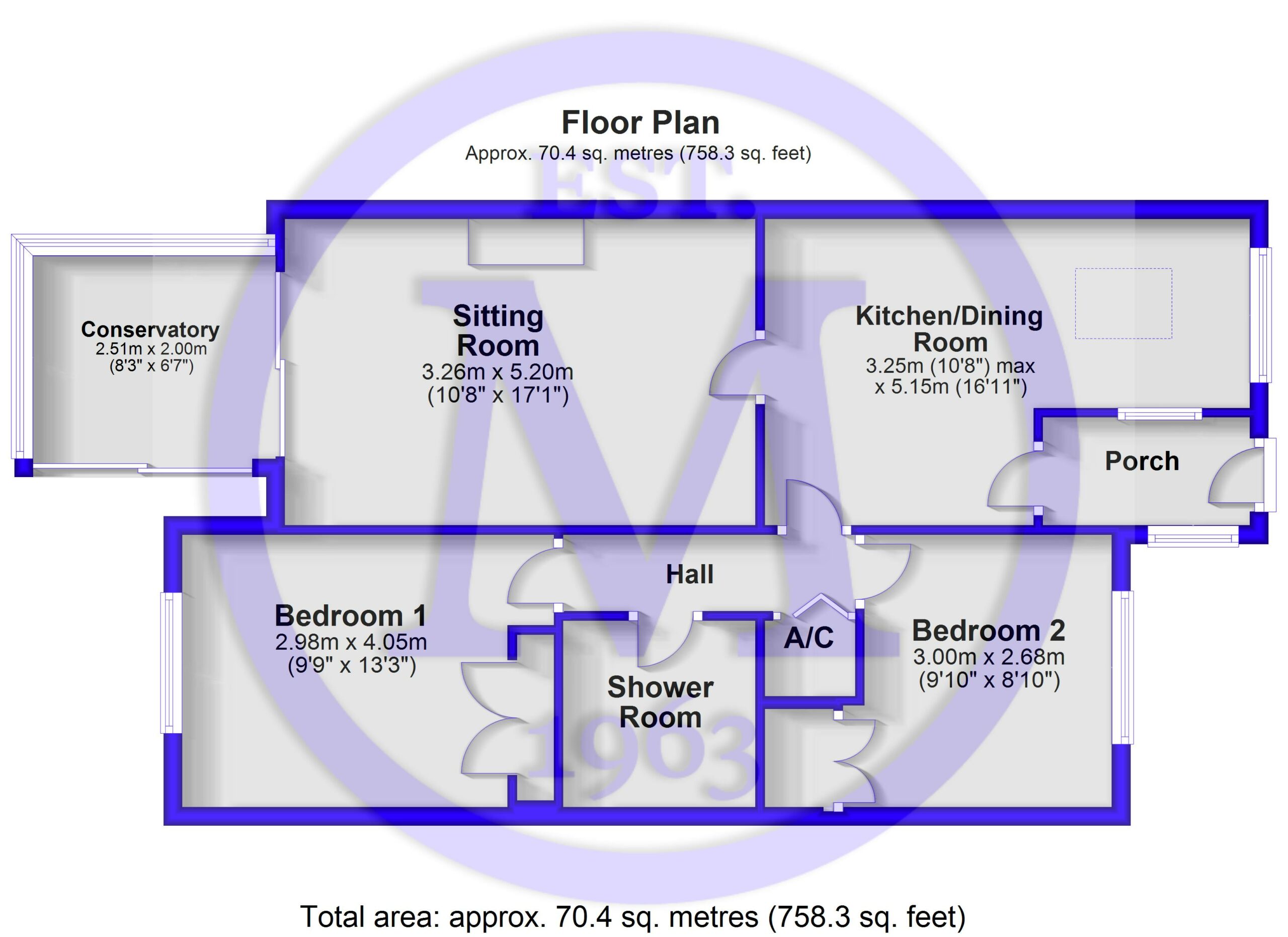 Bedroom two is situated at the front of the property, with a built-in wardrobe, a hatch to the loft space, and a large UPVC window.