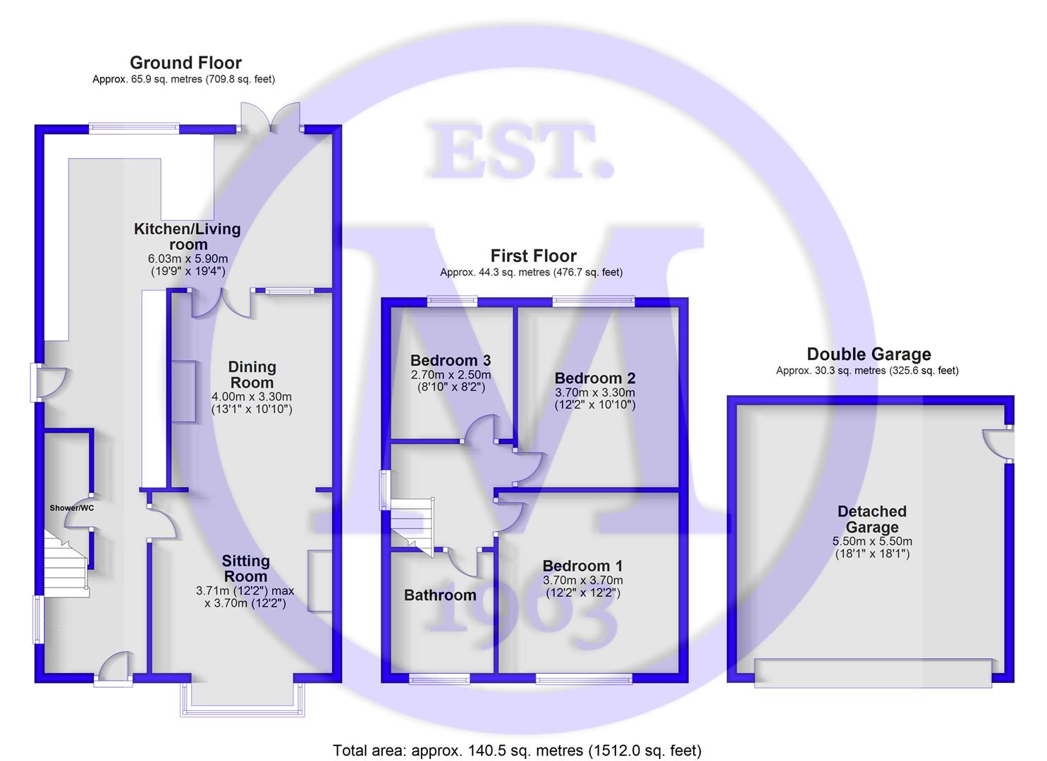 The ground floor WC includes a fully tiled shower cubicle and a window.