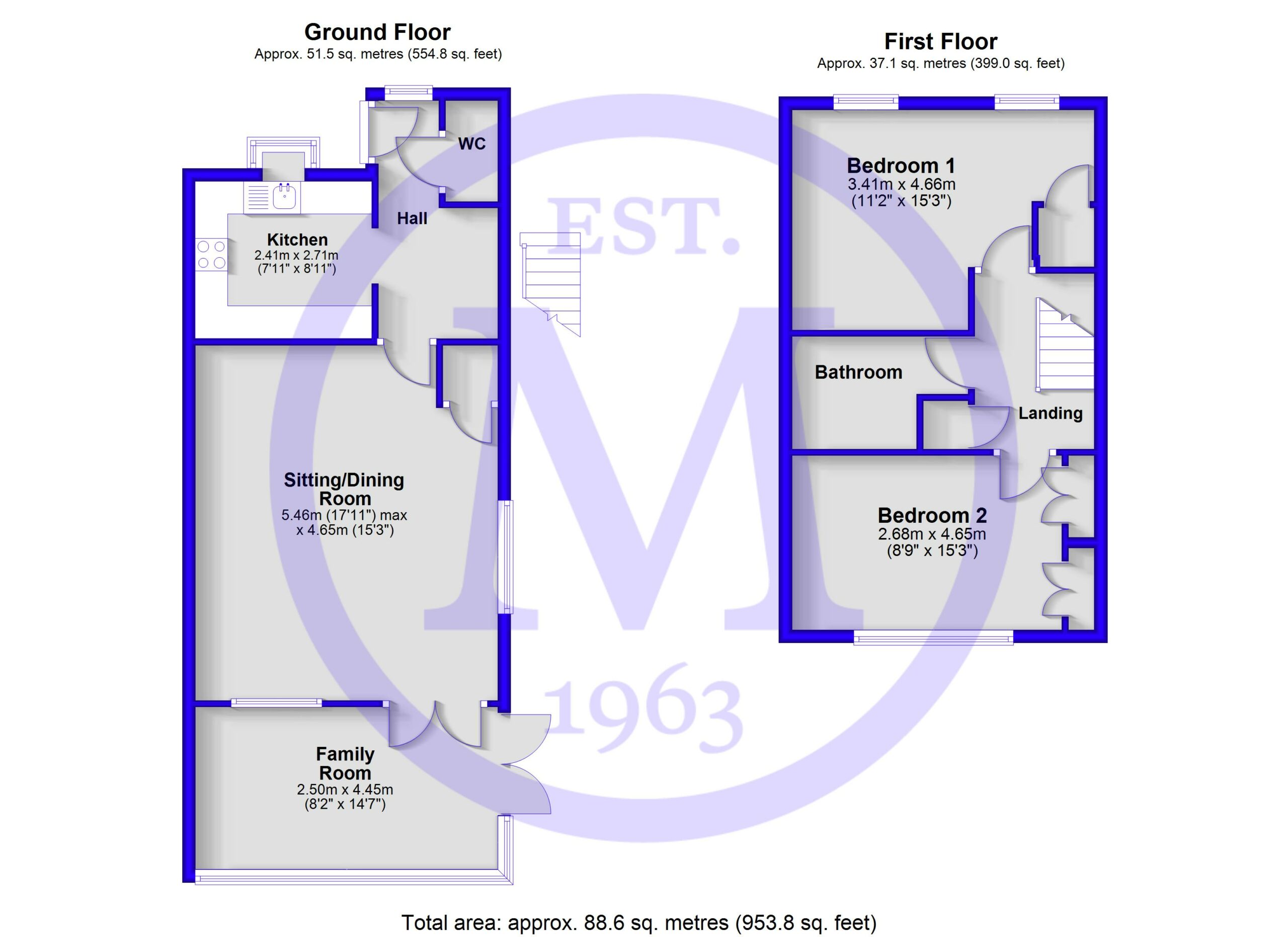 The spacious sitting/dining room benefits from a bright double aspect, a TV aerial point, modern electric heating, and an understairs storage cupboard.