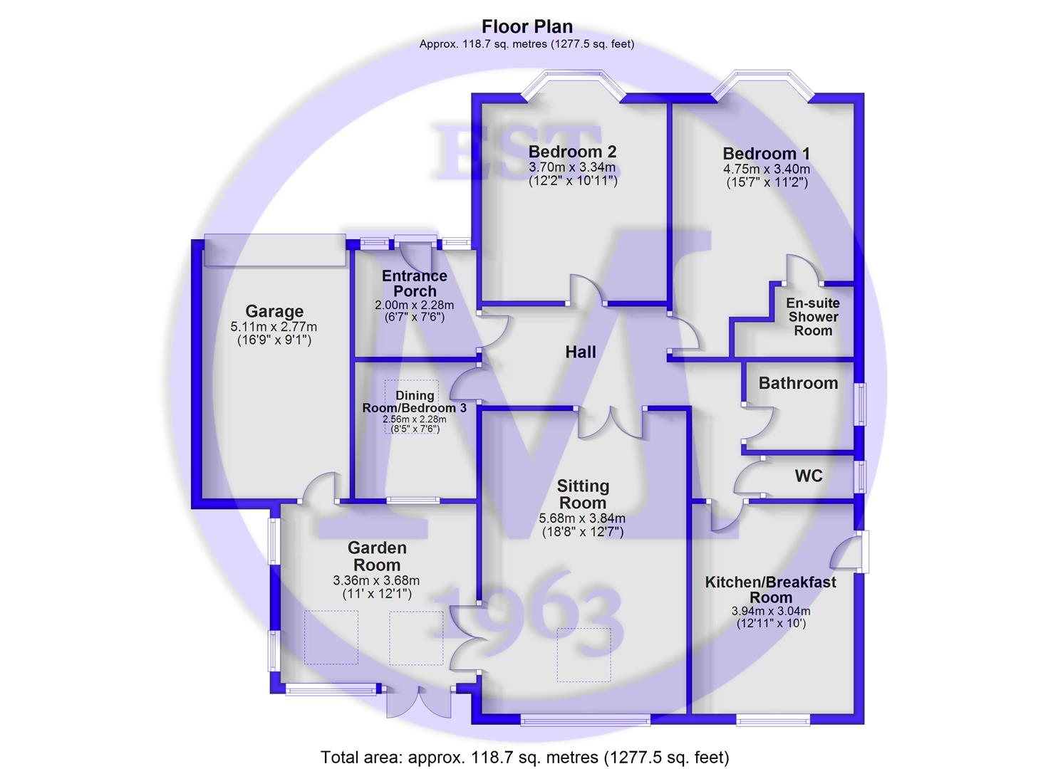 Three bedrooms, one currently used as a separate dining room, featuring a high level double glazed Velux window.