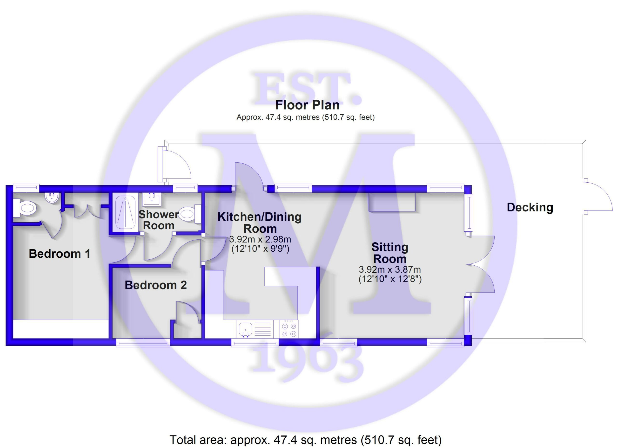 Sitting room with a feature electric fire and double casement doors leading onto the large, above average, south-facing decking area.