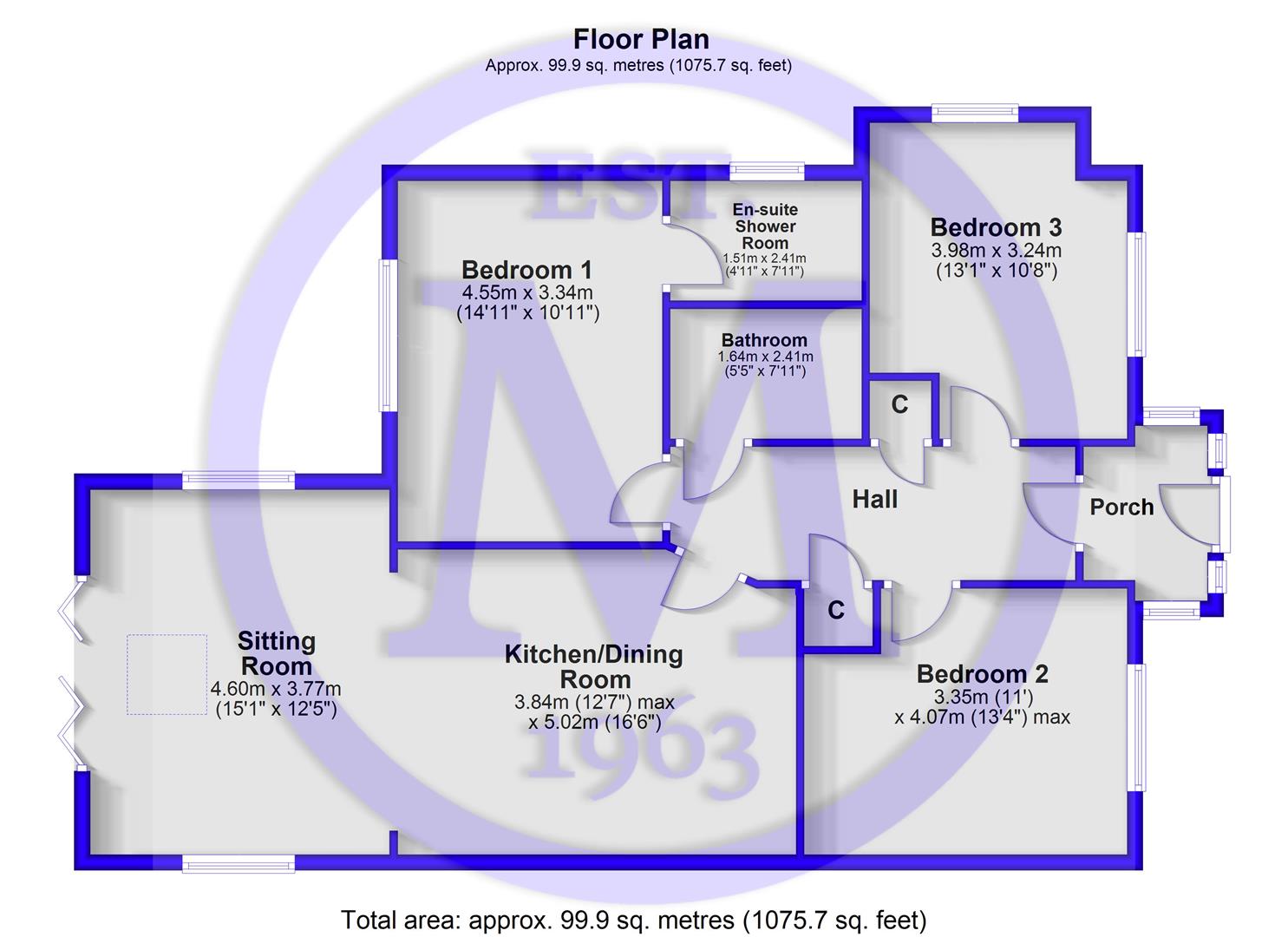 Three double bedrooms, one with a double aspect and two with high quality built-in bedroom furniture. The master bedroom benefits from a luxurious, fully tiled en-suite shower room fitted with a modern white suite comprising a shower cubicle with a Grohe thermostatically controlled shower, a wash basin with storage beneath, a WC, a chrome ladder style heated towel rail, timber effect flooring, recessed ceiling spotlights, and an extractor fan.