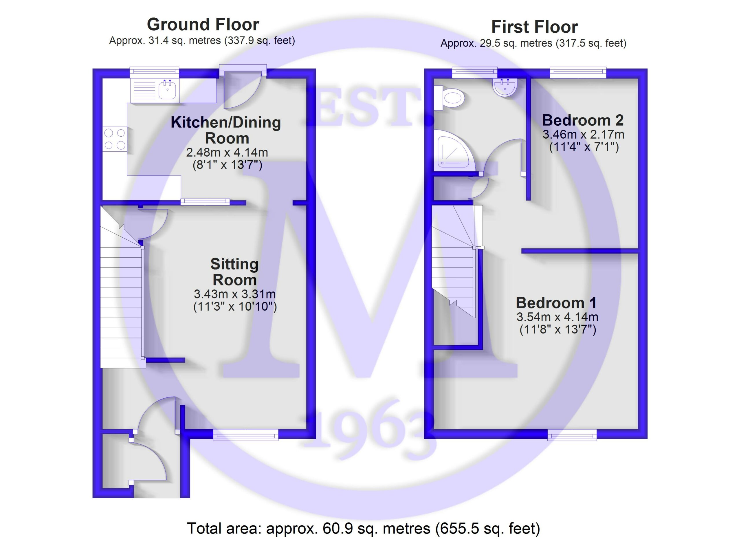 Two double bedrooms, with bedroom one situated at the front of the property, while bedroom two enjoys an outlook over the rear garden.