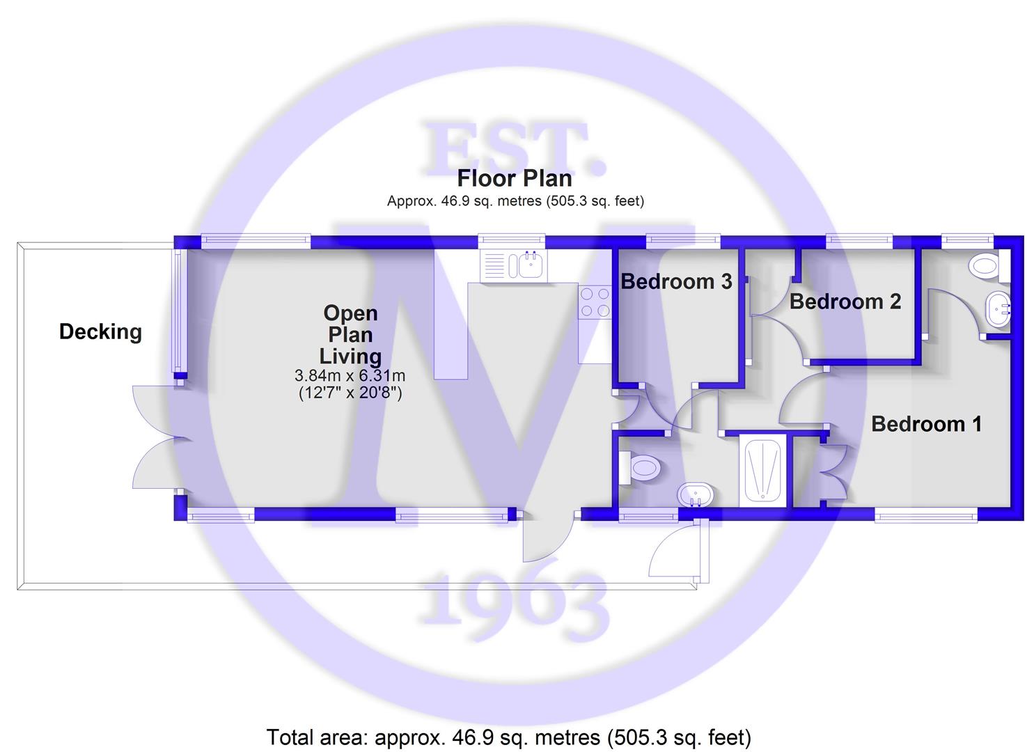 The impressive open plan kitchen/living area enjoys a pleasant triple aspect with double casement doors opening onto the decking. In the kitchen/dining area, there is timber effect flooring, a generous range of modern wall and base units with a contrasting worktop, a one and a half bowl sink unit with a mixer tap and drainer, a four burner electric hob with extractor fan above, and integrated appliances including an eye level microwave, a double oven, a tall stand up fridge/freezer, a slimline dishwasher, and a built-in washing machine. There is also a four seater dining table and chairs. In the living area, there is built-in storage, an electric flame effect fire, carpeted flooring, a smart TV, a DVD player, and a radiator.