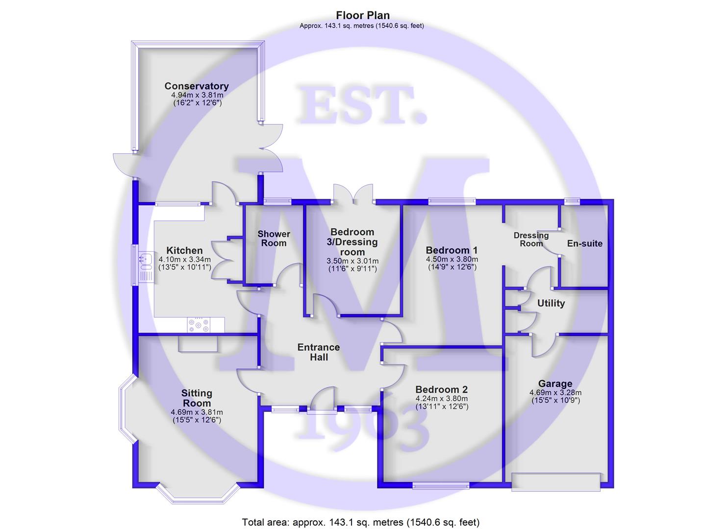 The master bedroom is a particular feature of this property. It is a large double room with an archway leading through to the dressing area, which offers ample space for wardrobes, access to the utility room, and a separate access to the en-suite.