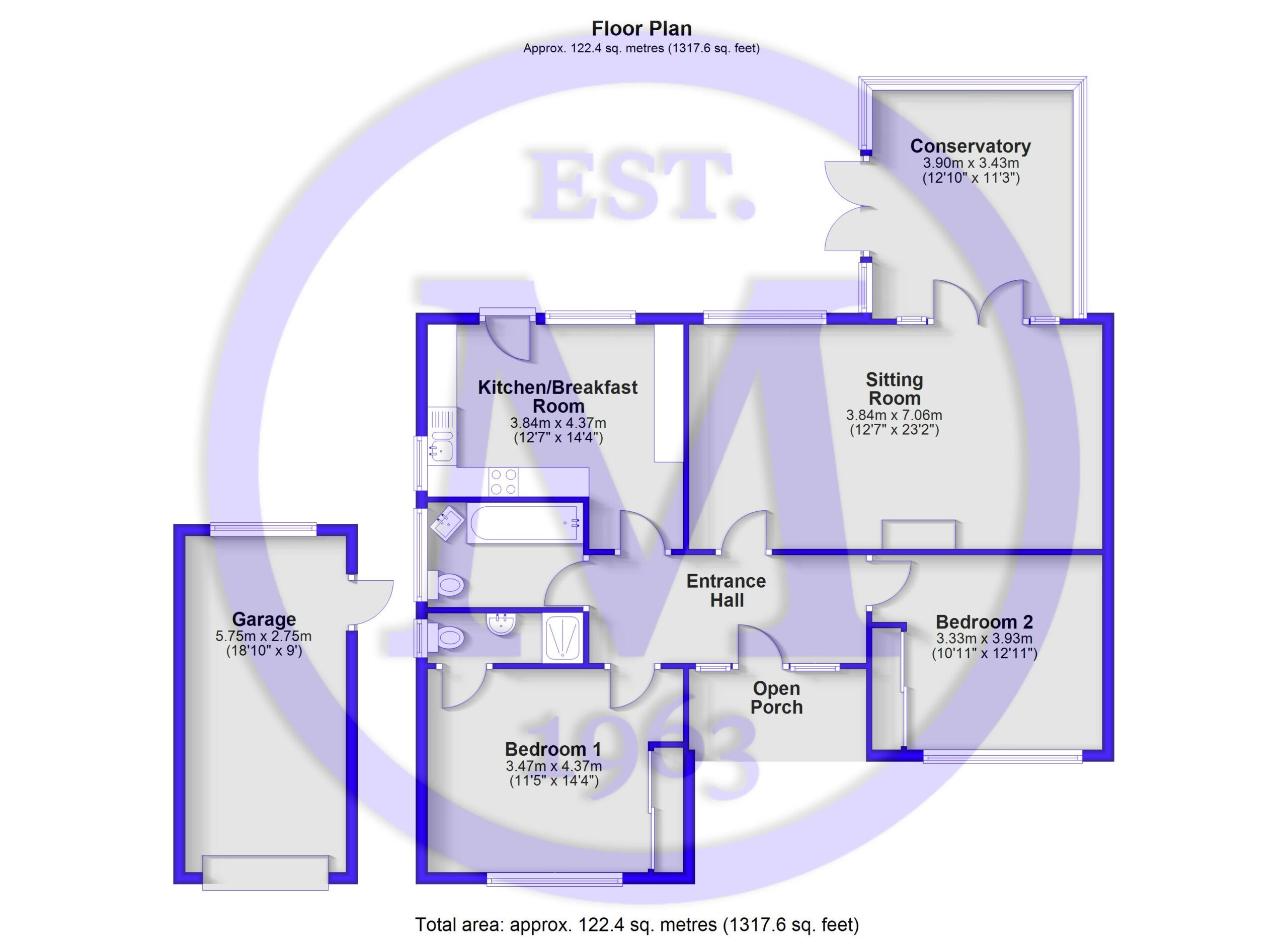A spacious sitting room featuring a pleasant outlook onto the rear garden, a fireplace and double doors leading to the conservatory.