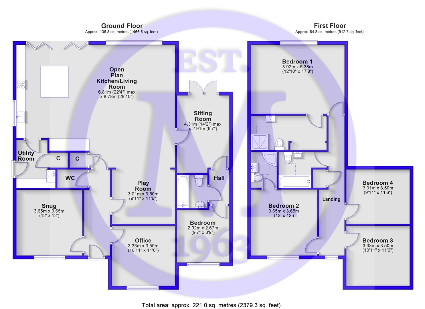 This characterful and substantial four/five bedroom detached house is situated in Hordle village, within a short walk of the highly sought after school. The property offers bright and versatile accommodation, featuring a luxury kitchen and bathrooms, a fantastic open plan kitchen/family room, a snug/playroom, two en-suite double bedrooms, and the potential for a separate annexe if required.