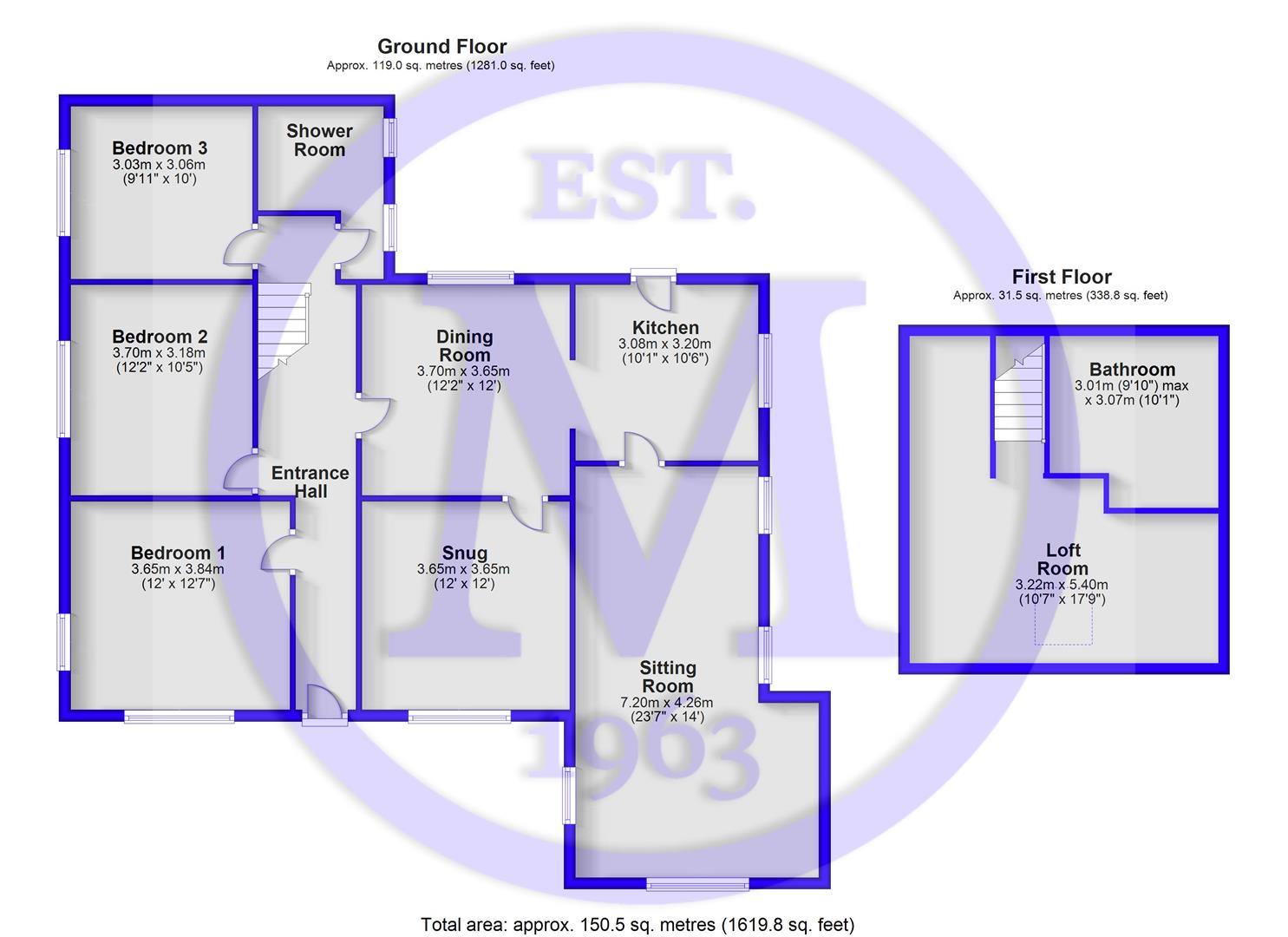 On the first floor is a spacious bedroom, which would make an ideal hobbies room, with useful eaves storage cupboards, a Velux window, and its own en-suite bathroom.