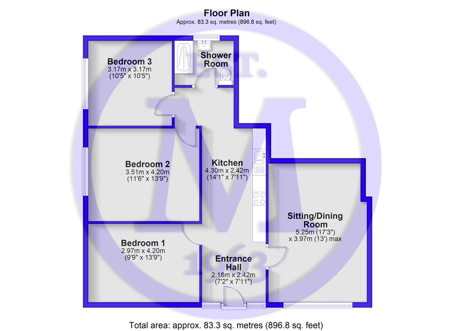 Three double bedrooms, with bedroom one enjoying a pleasant outlook over the garden.