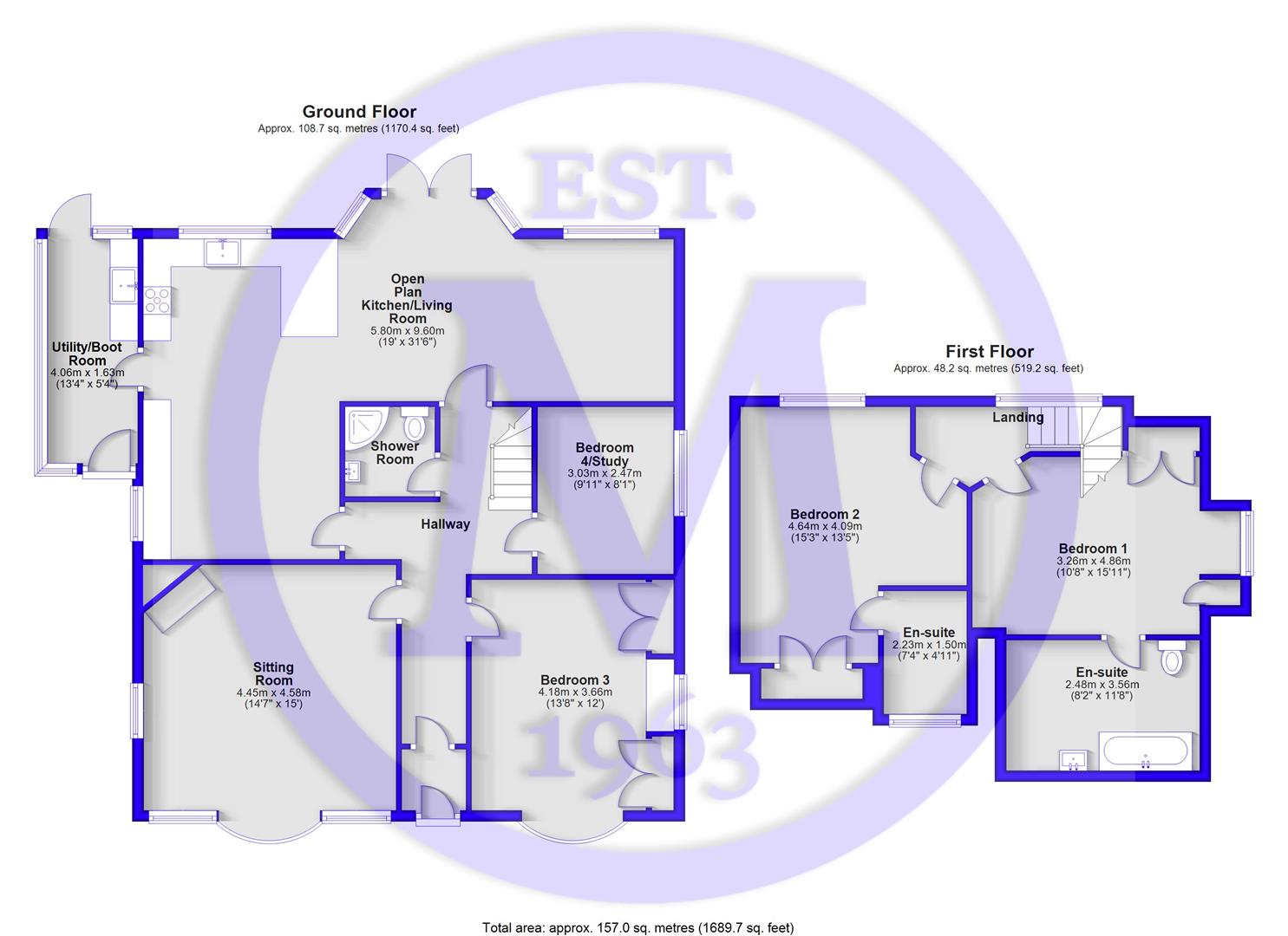 The third bedroom on the ground floor is an impressive king size room, featuring an excellent range of fitted wardrobes, a dressing table, and a pleasant outlook over the front of the property.