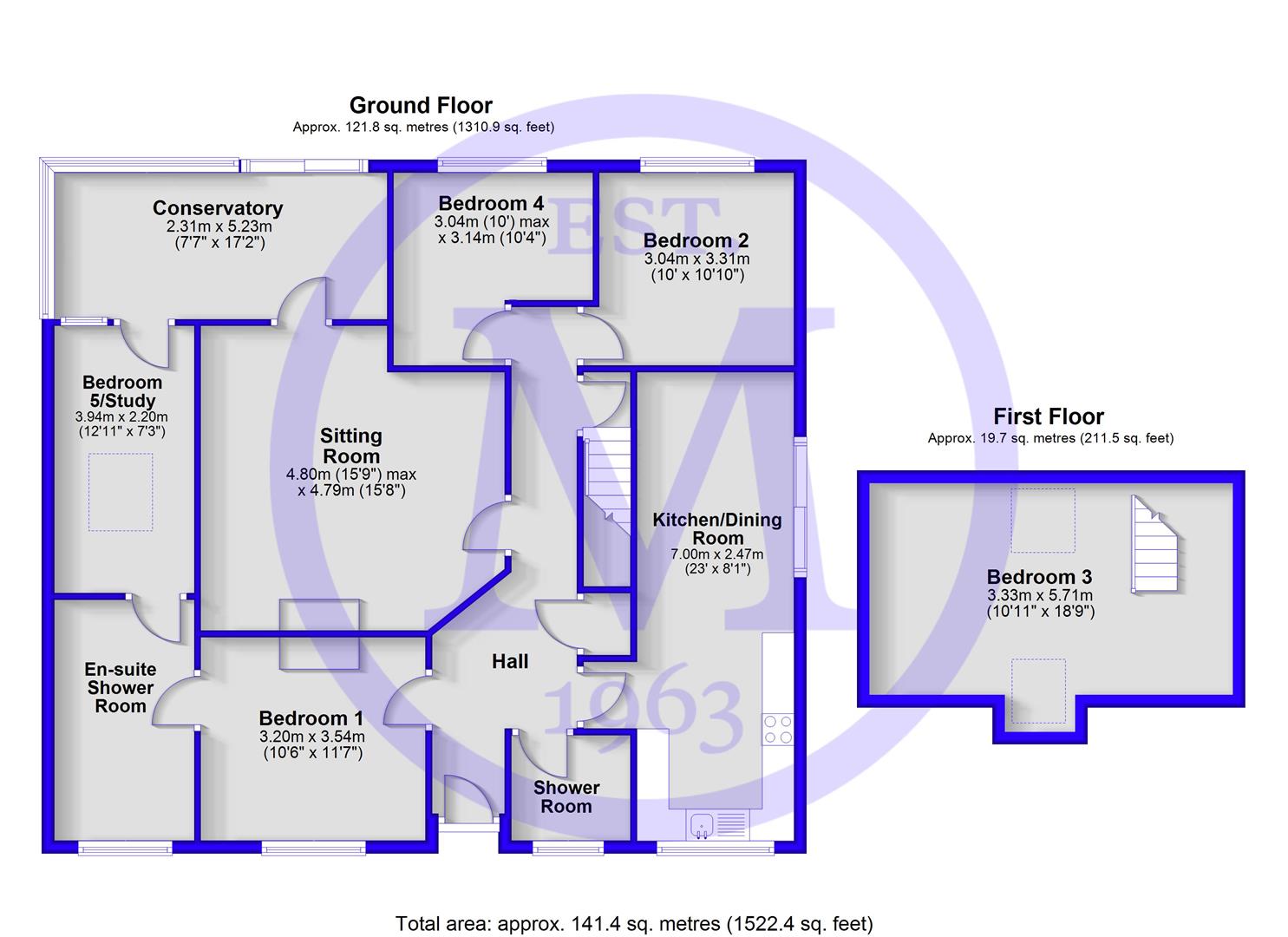 The conservatory is constructed of floor to ceiling UPVC double glazed windows and panels, a UPVC double glazed roof, sliding patio doors leading out to the decking and rear garden, and access through to bedroom five/ground floor office.
