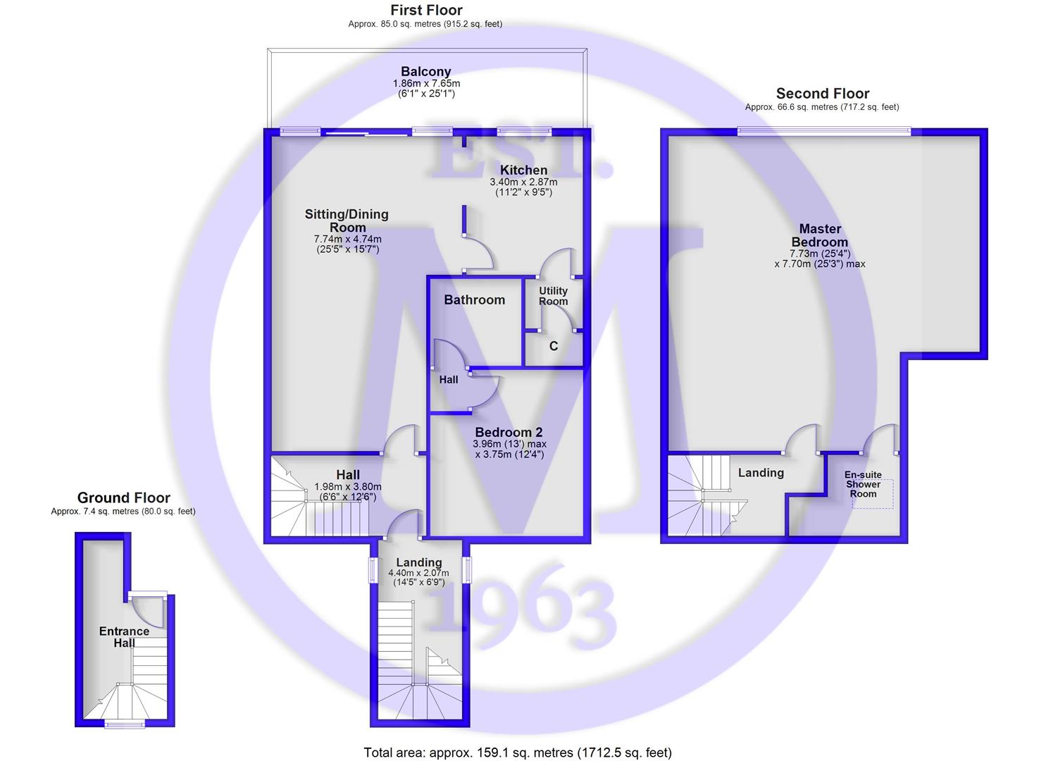 Entrance hall with a private ground floor entrance and a stairway leading to the first floor.