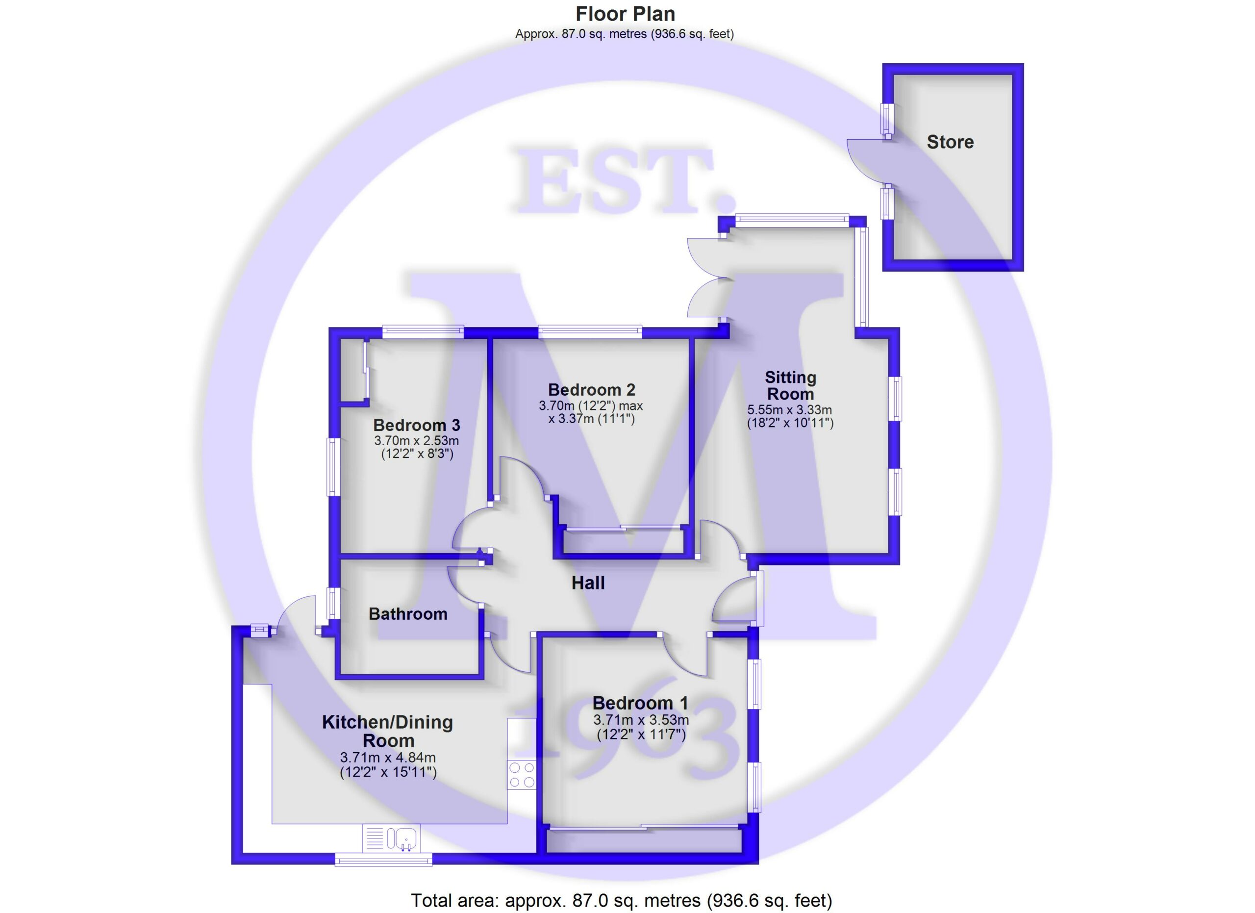The bungalow benefits from three spacious double bedrooms, all with built-in storage. The master bedroom is situated at the front of the property and features two UPVC windows and a TV aerial point.