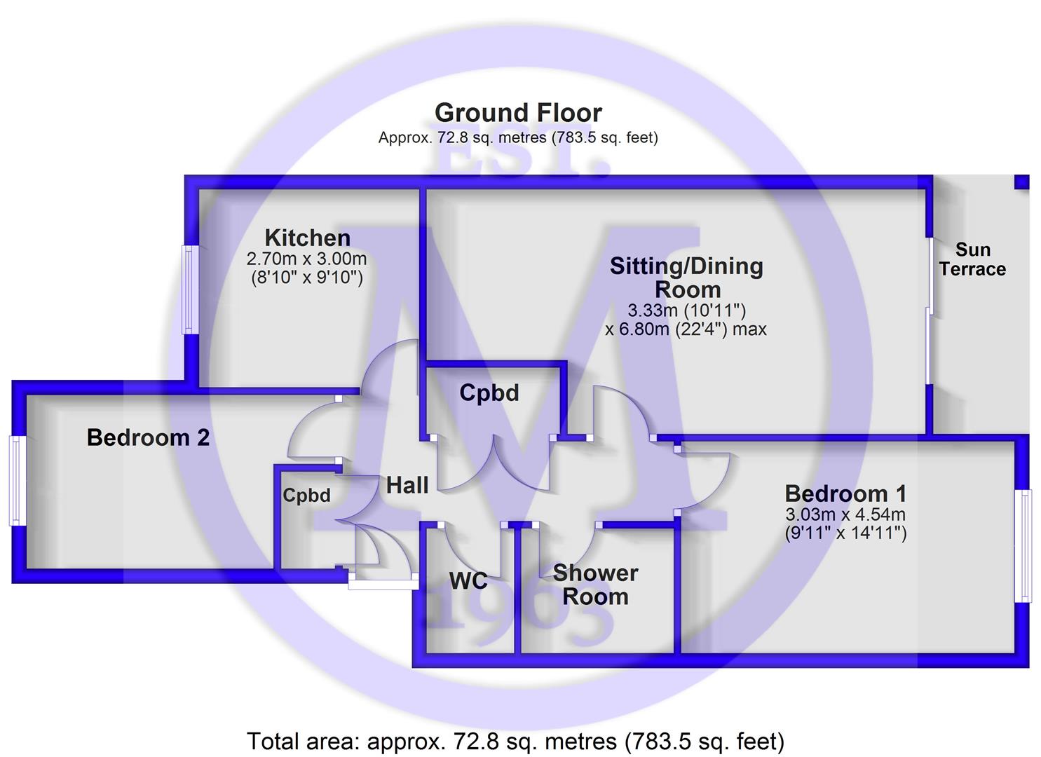 Sun terrace facing in a westerly direction.