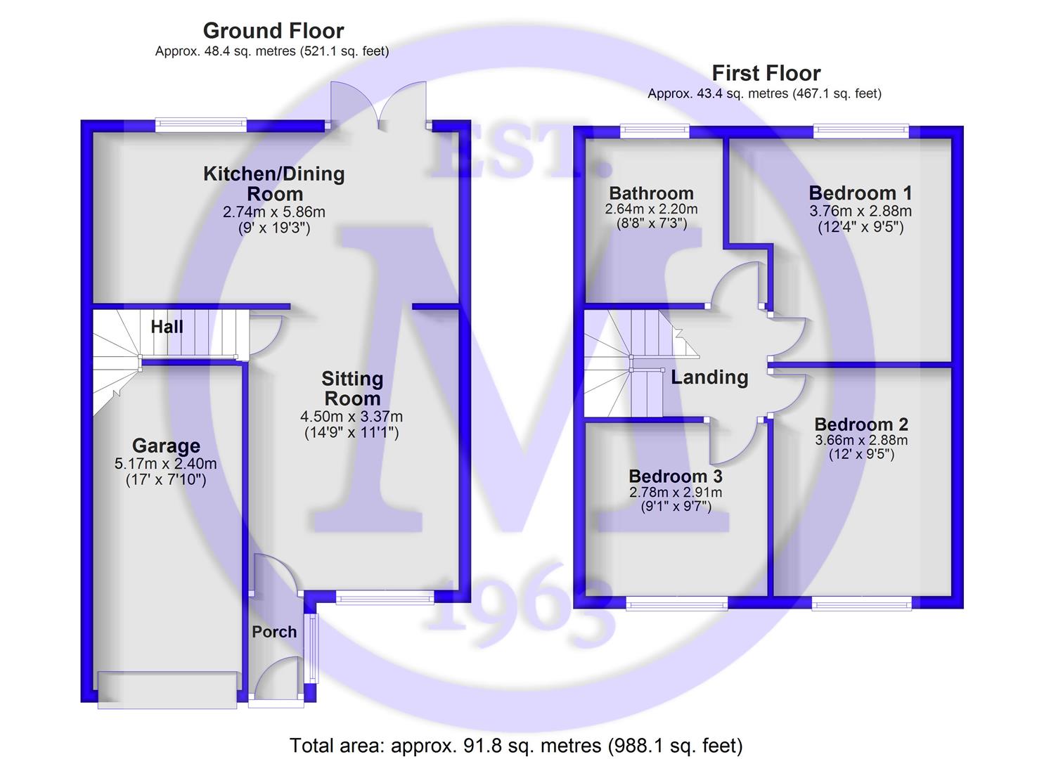 Three double bedrooms, two with built-in wardrobes.