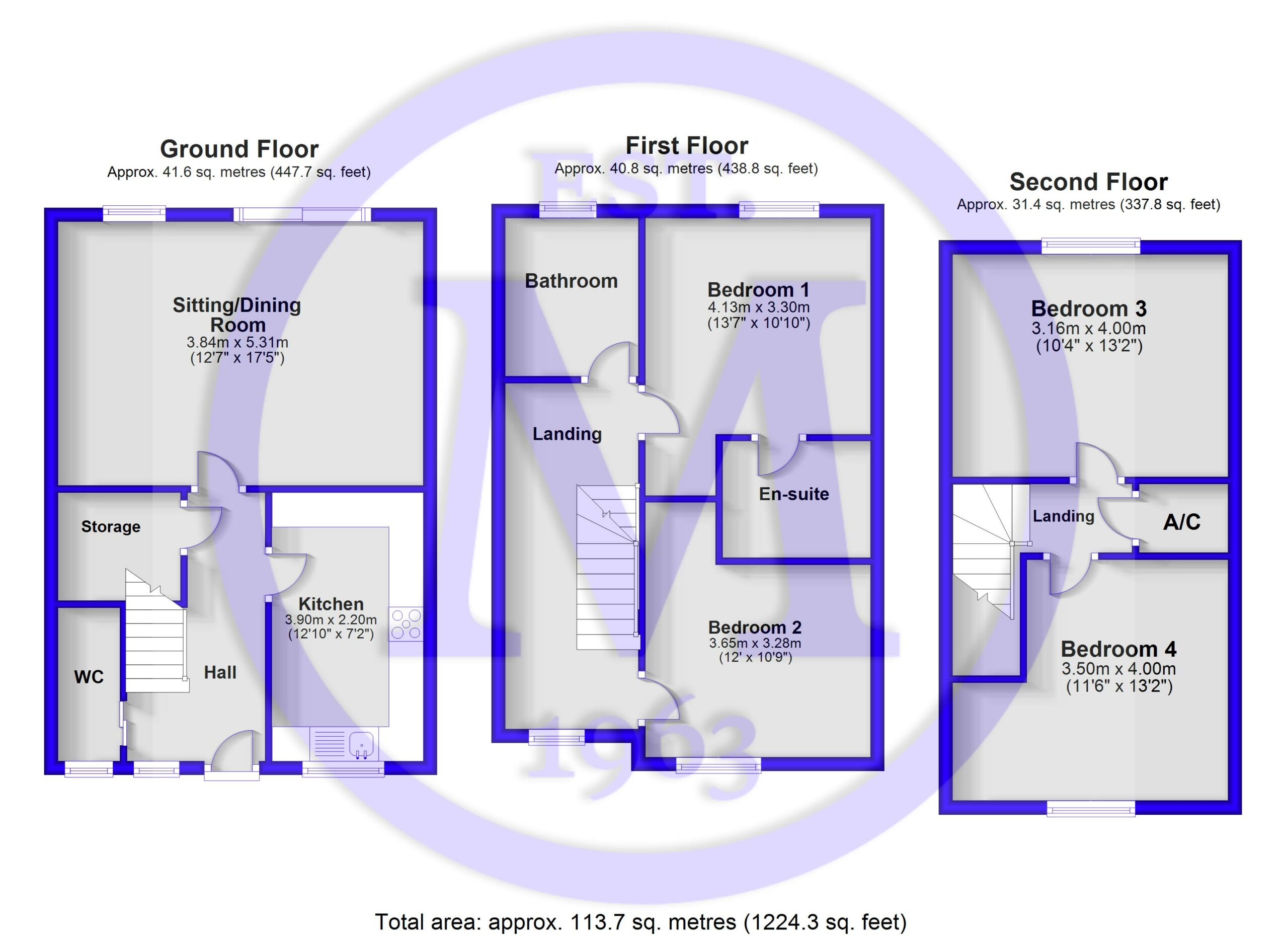 Two further double bedrooms, with bedroom four featuring a full height window and offering an ideal home office.