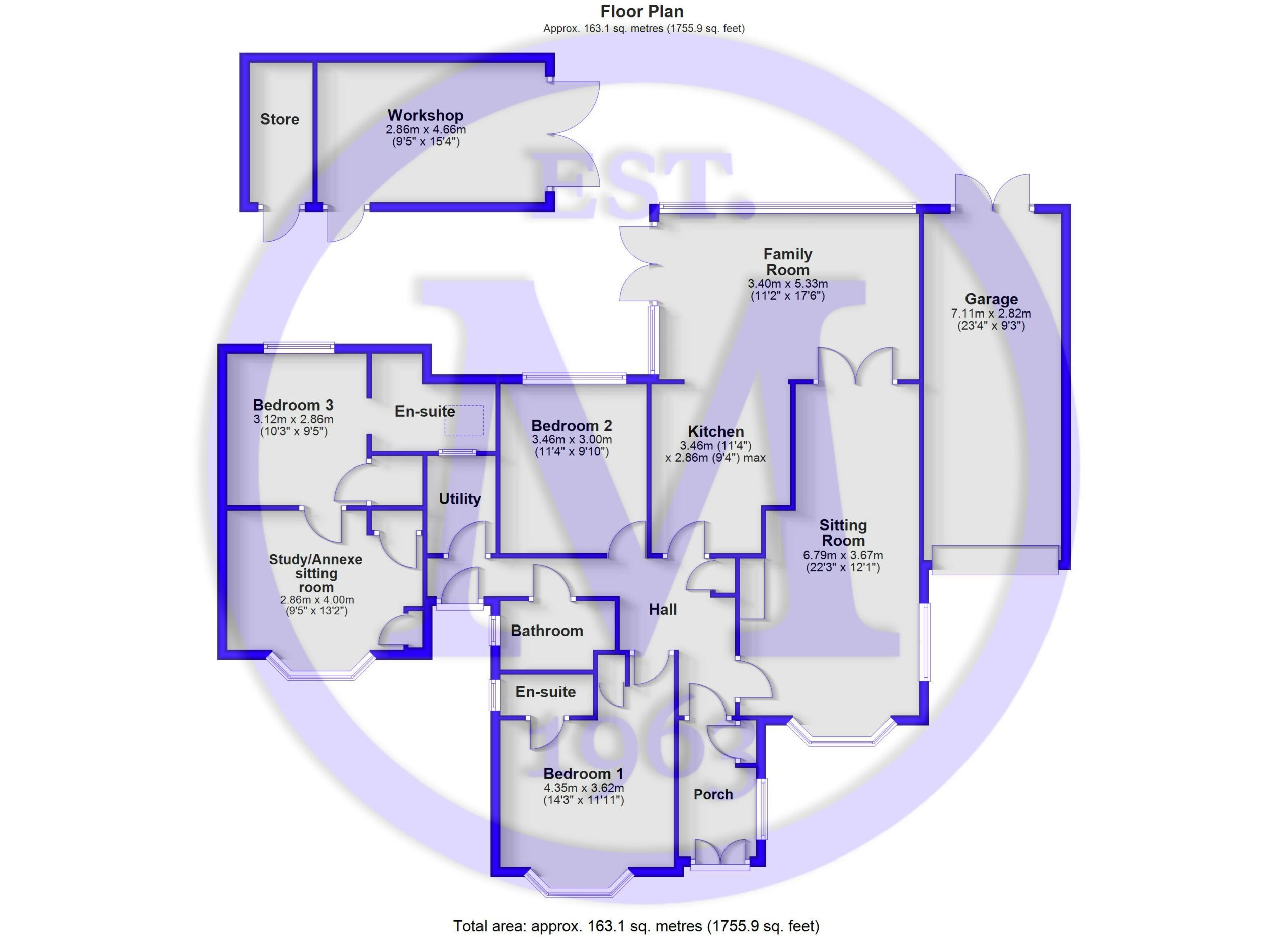 The annexe sitting room is currently set up as a home office with built-in storage and an attractive bay window to the front.