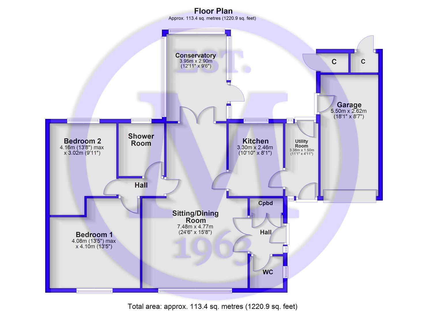 Entrance hall with a UPVC double glazed front door and a double boiler cupboard housing a wall mounted Worcester gas fired boiler.