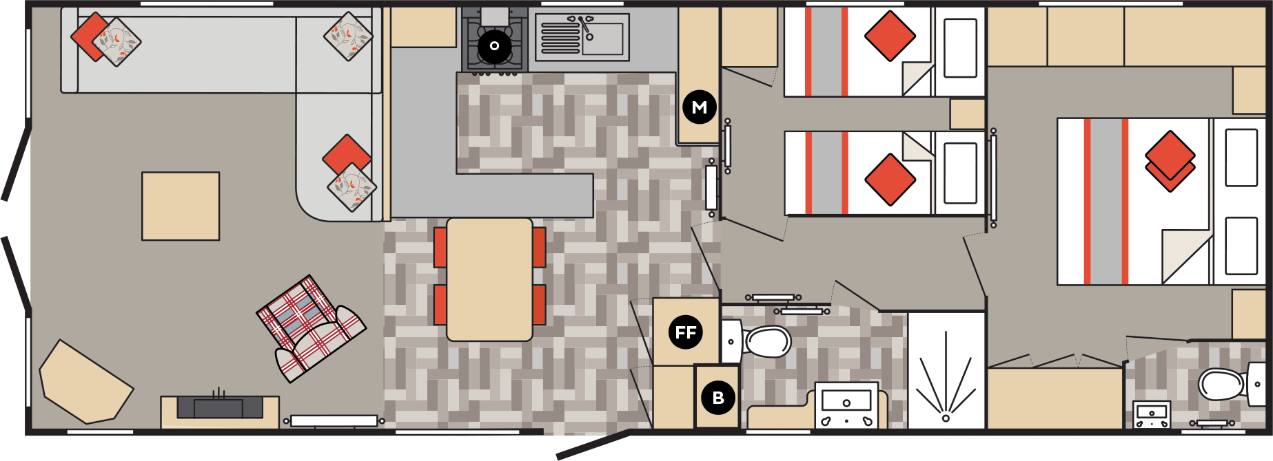 The master bedroom is situated at the rear of the property and has a double bed, bedside cabinet, a fantastic range of built in storage and an ensuite cloakroom.
