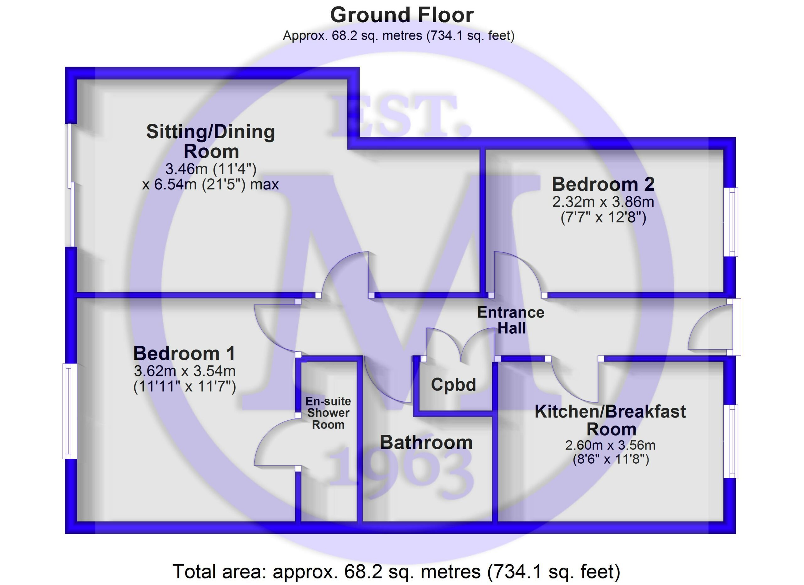 Two double bedrooms, with the main bedroom enjoying fantastic south facing sea views and a fully tiled en-suite shower room comprising a shower cubicle with a Bristan shower, a wash basin, and a WC.