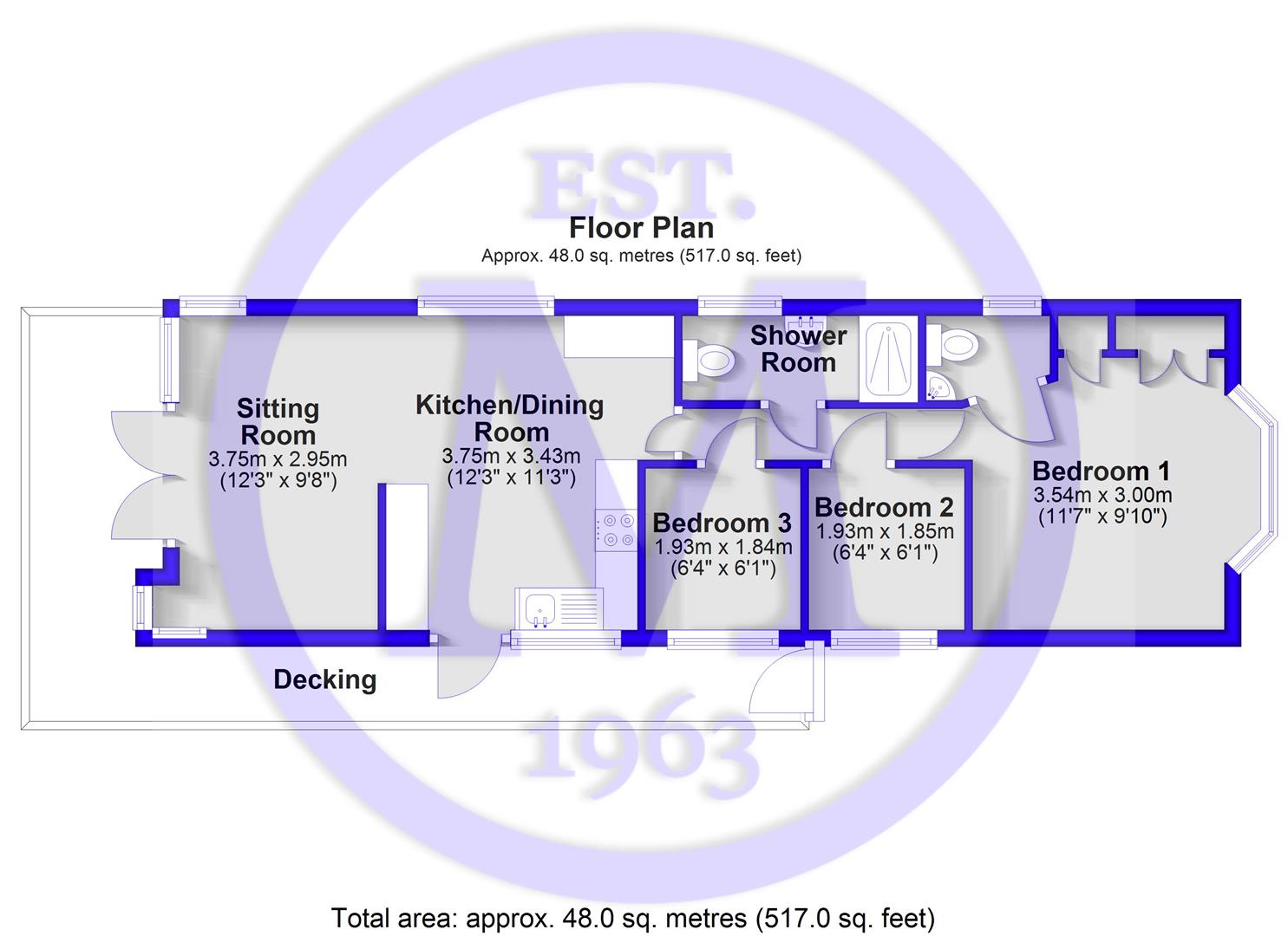 Bedroom two is currently laid out with bunkbeds however, would also make a good size single bedroom with a UPVC window, and matching bedside cabinet and wall hung storage.