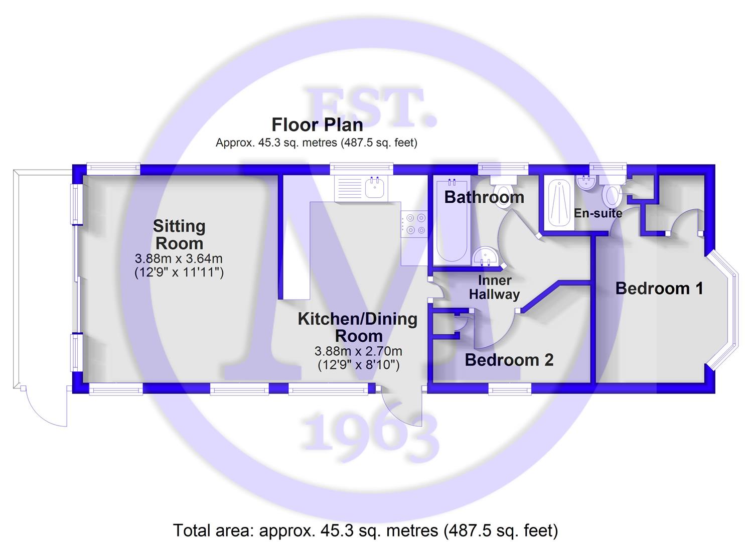 Bedroom two is a good sized twin room with a single wardrobe and wall mounted storage.