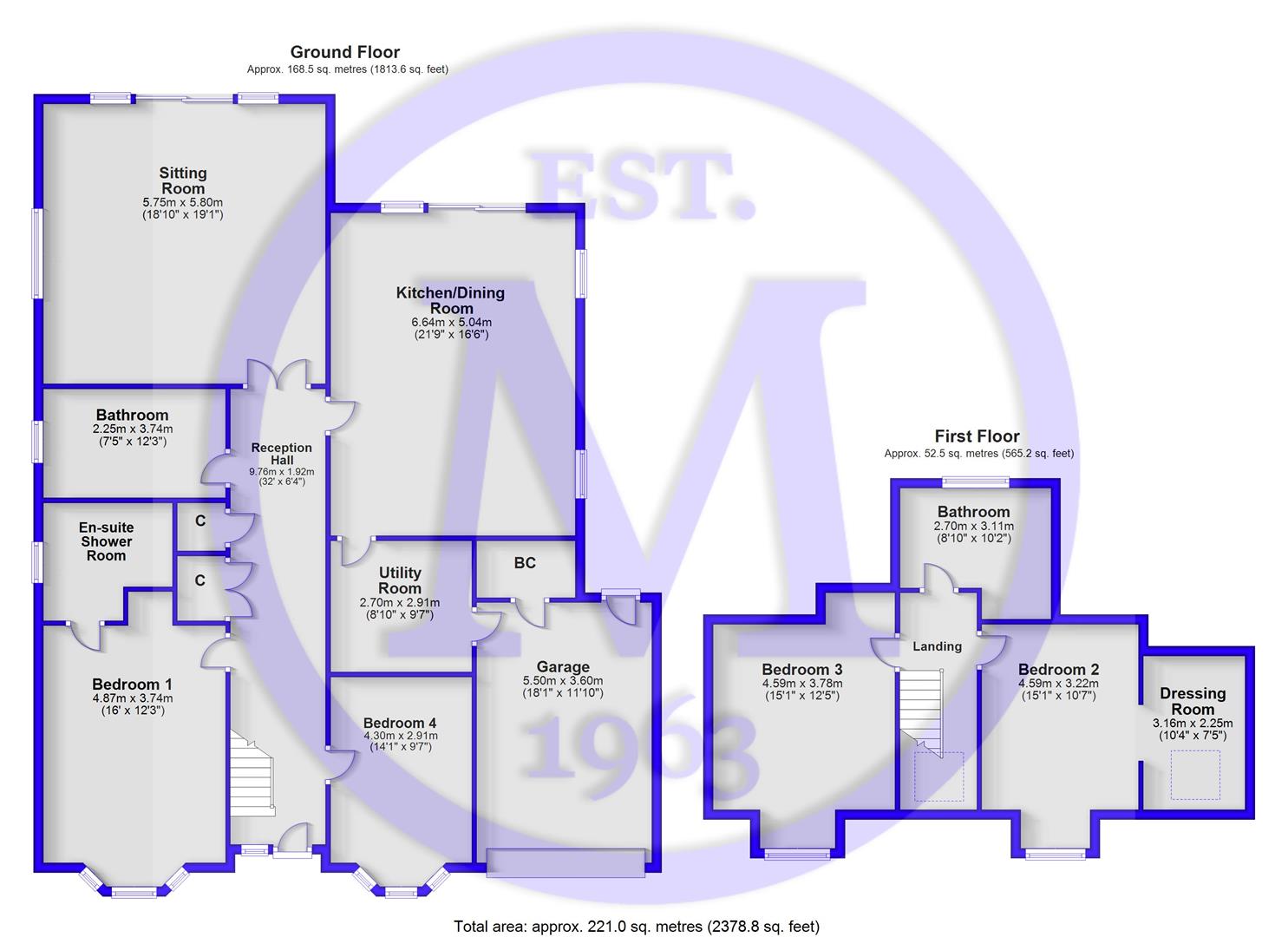 Two first floor double bedrooms, one with a separate dressing room.