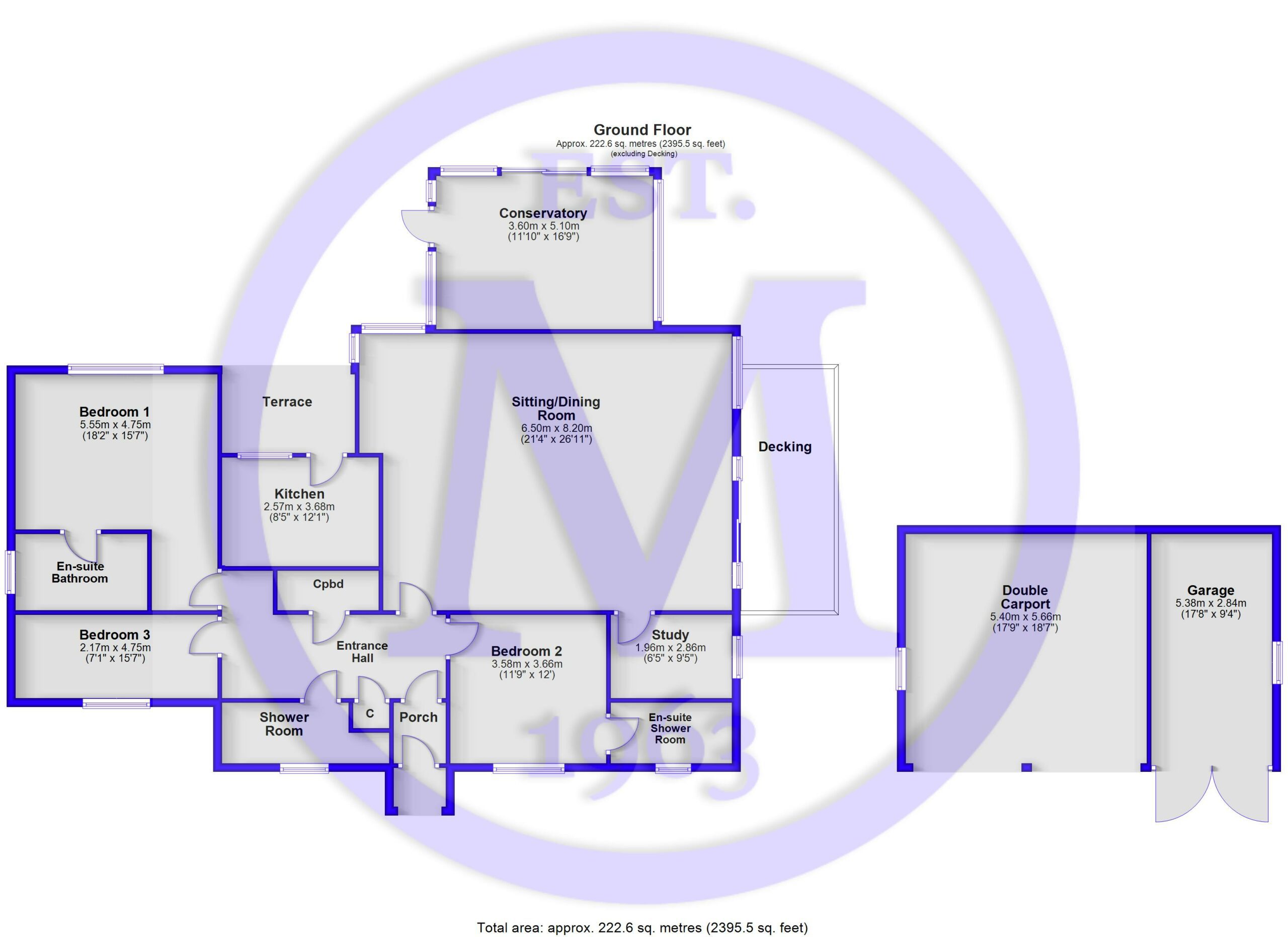 Three double bedrooms, two with en-suite facilities and built-in wardrobes.