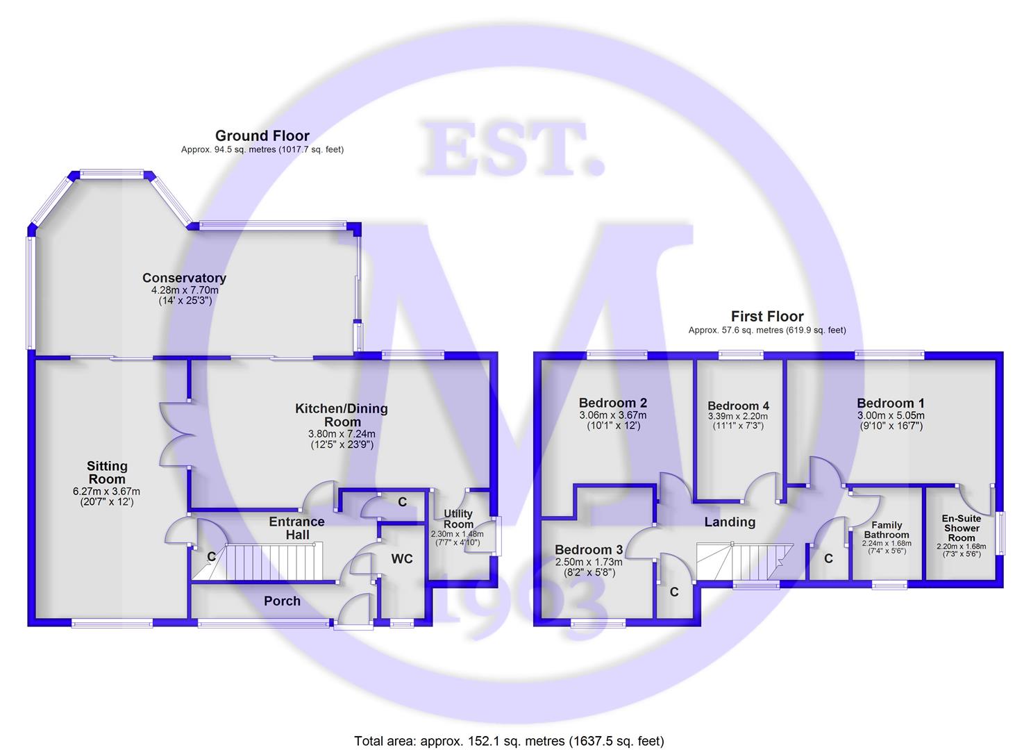 Four good sized first floor bedrooms, all with built-in storage, with bedroom four currently used as a dedicated dressing room.