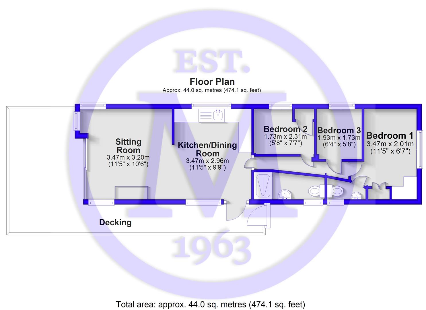 The sitting room enjoys a pleasant triple aspect and features a fireplace with a built-in electric fire. A large corner sofa provides ample seating and conveniently converts into an additional sleeping space. Sliding doors lead directly onto the decking.