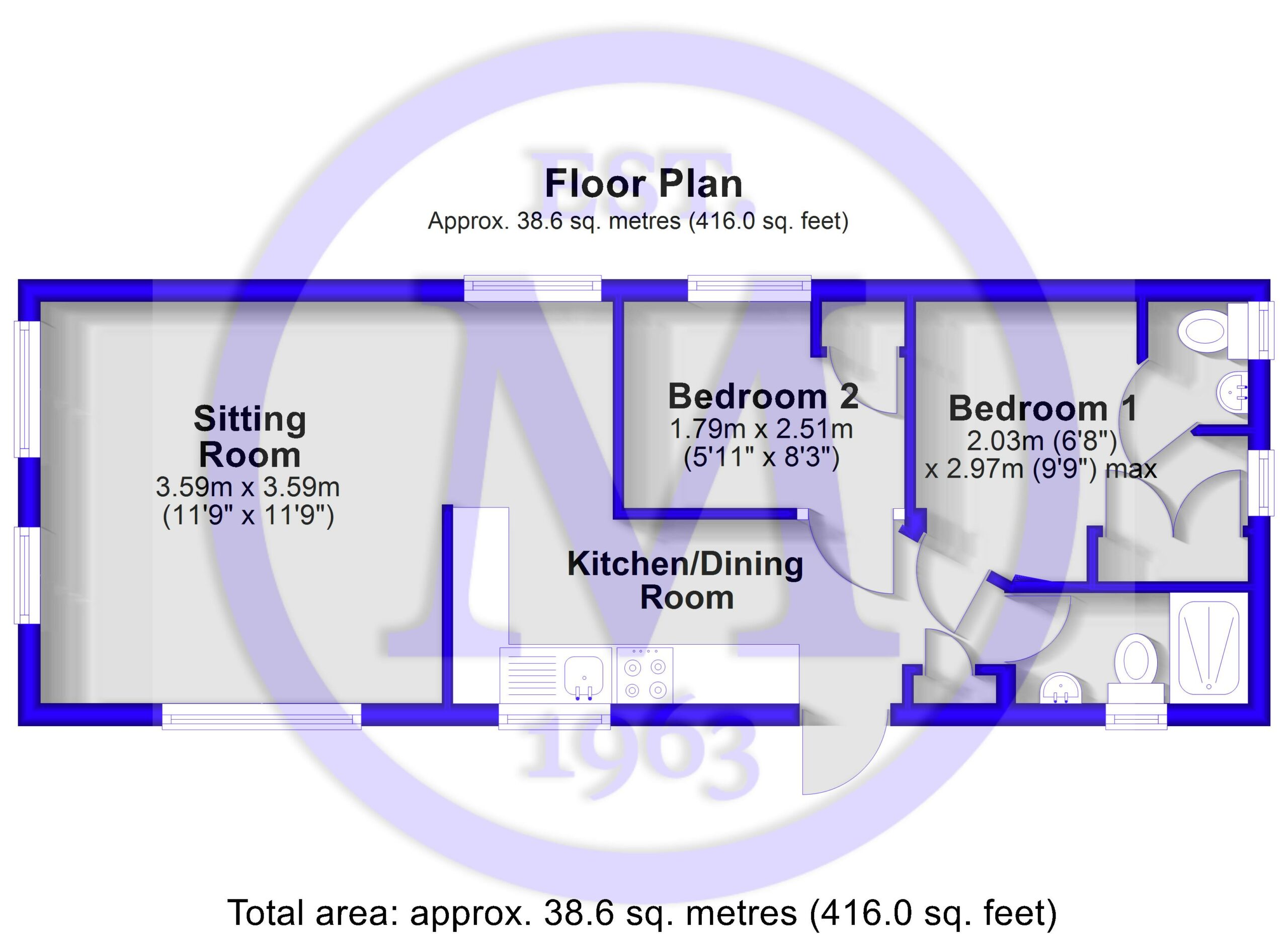 Bedroom two is a twin room with an outlook over the side of the pitch and includes a single wardrobe with matching storage.
