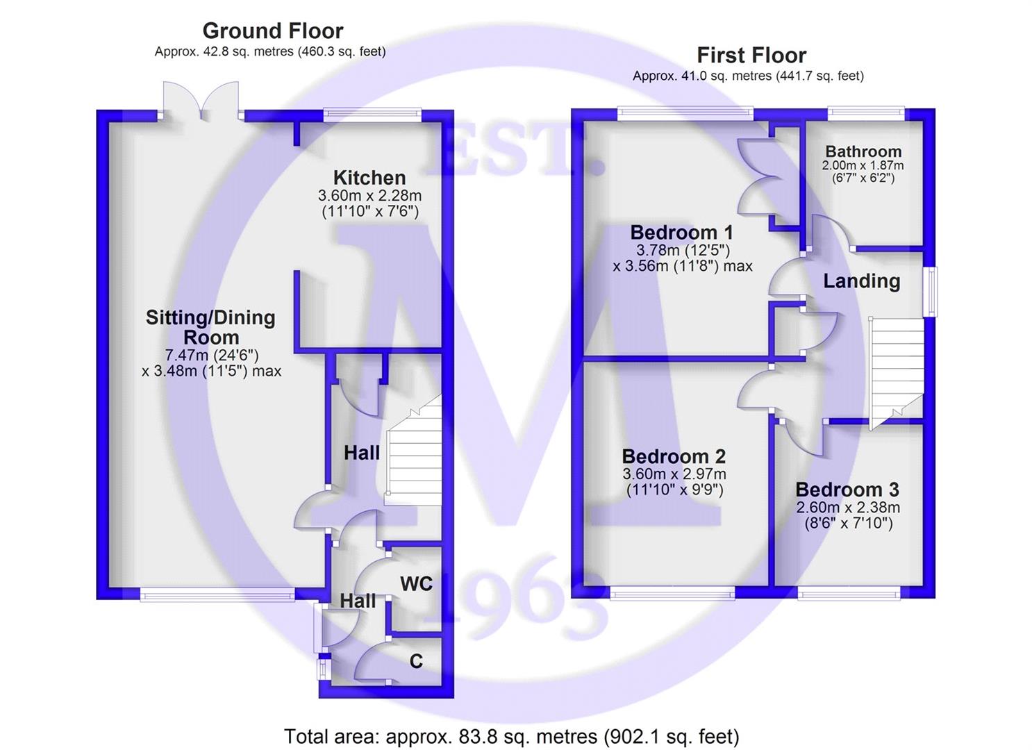 The ground floor cloakroom has been recently refitted and includes a WC, a wash hand basin, part tiled walls, and tiled flooring.