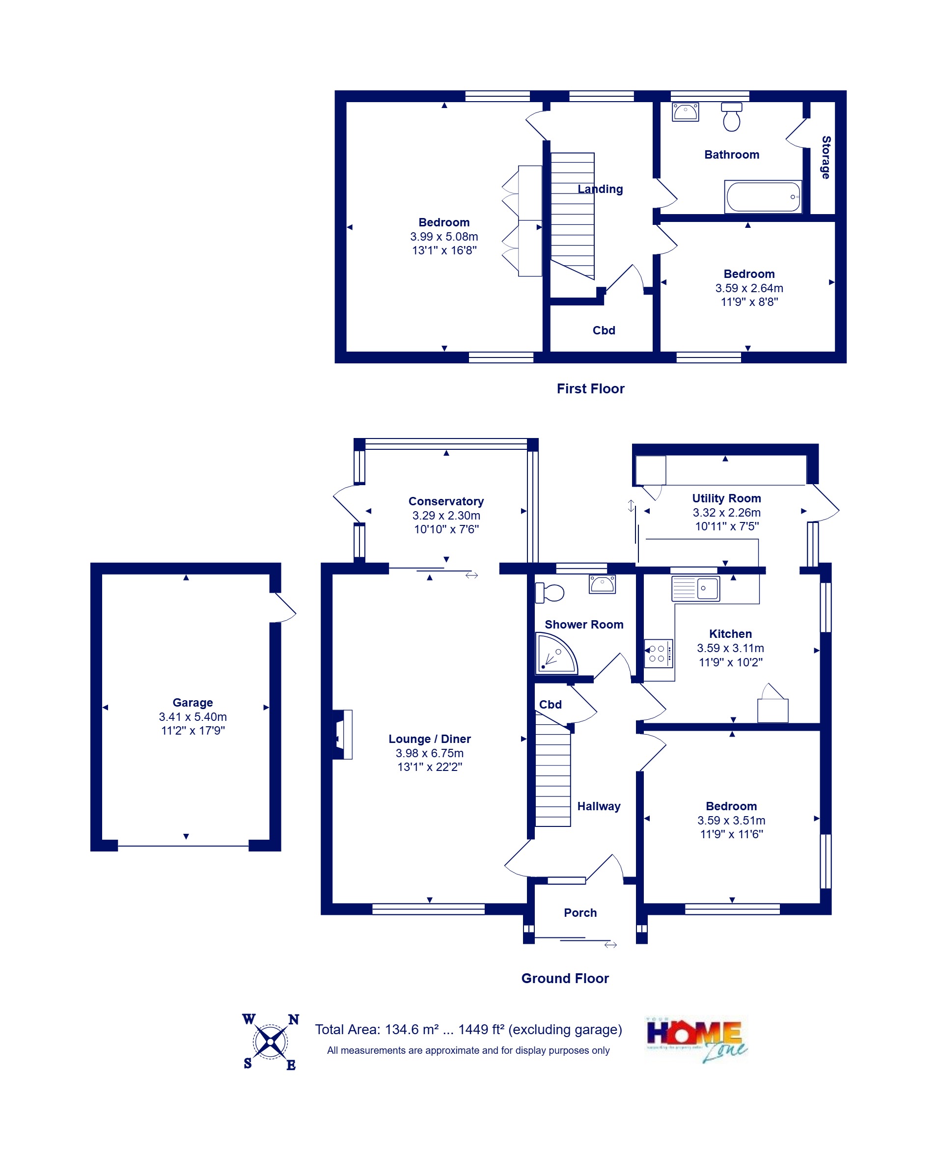 Offering over 1300sqft of accommodation comprising three double bedrooms, two bath/shower rooms, large dual aspect lounge/diner, kitchen/breakfast room, separate utility room and conservatory extension.