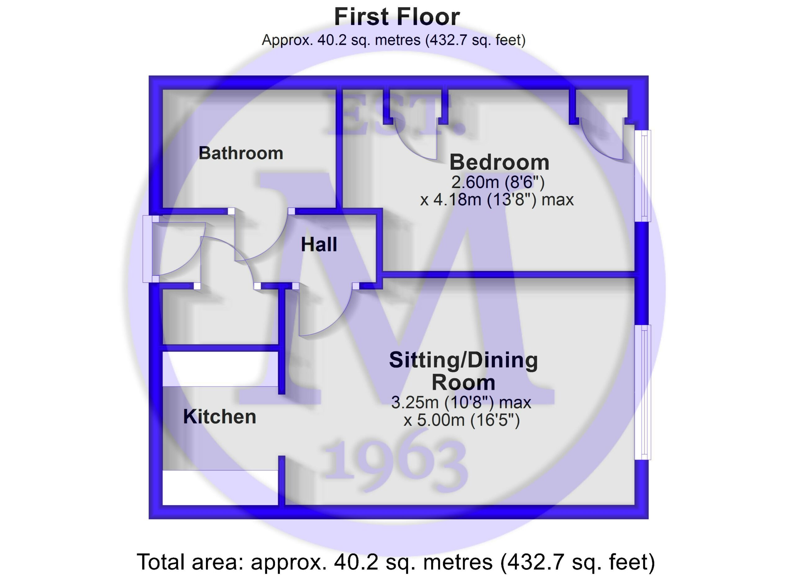 The sitting/dining room enjoys an outlook over the communal garden and parking area, and has a cupboard housing the central heating boiler, a TV aerial point, and a central heating thermostat.