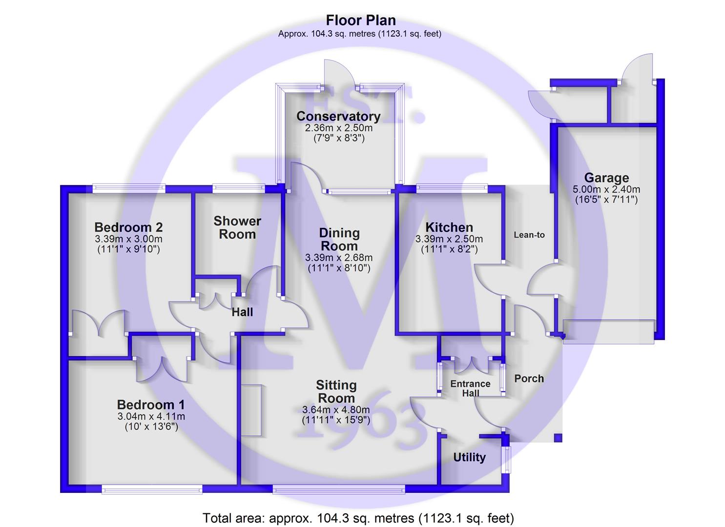 The conservatory is constructed with a dwarf cavity brick wall, UPVC double glazed windows, a UPVC double glazed door, and a polycarbonate roof.