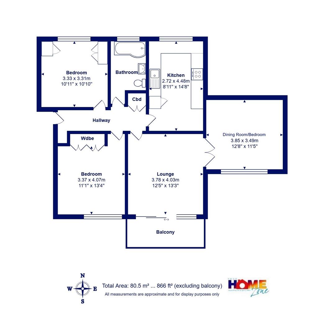 • South facing living rooms (dining room could be bed 3 if required) and balcony