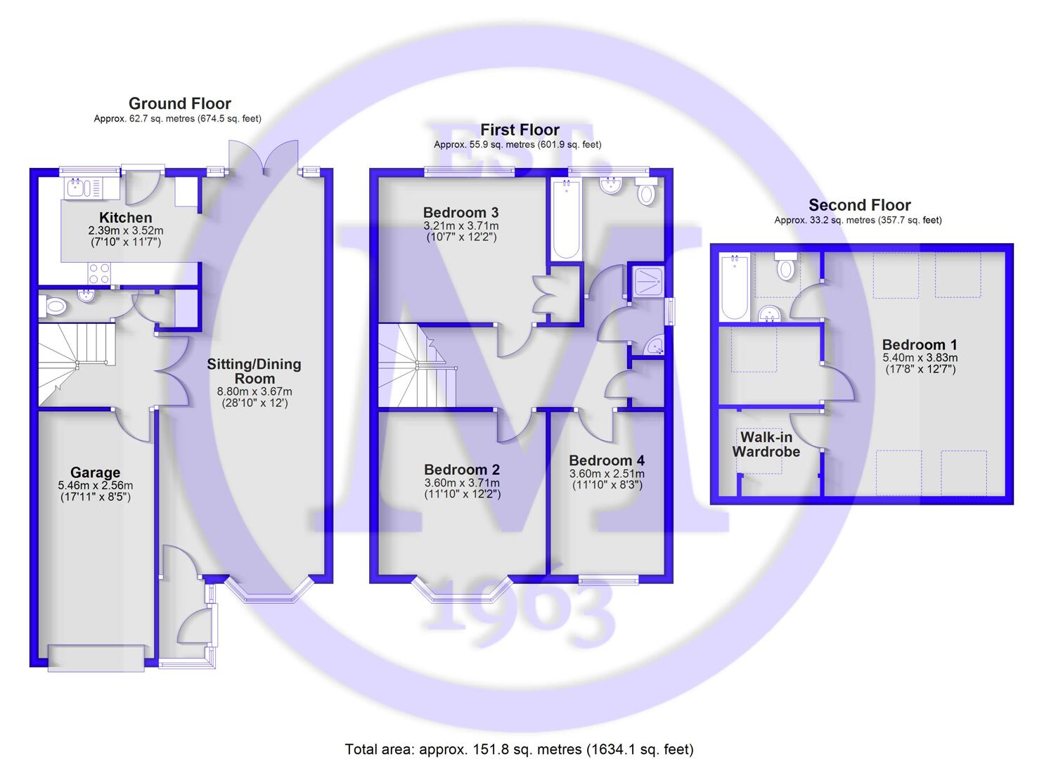 Three double bedrooms on the first floor, with bedroom three benefiting from a built-in double wardrobe.