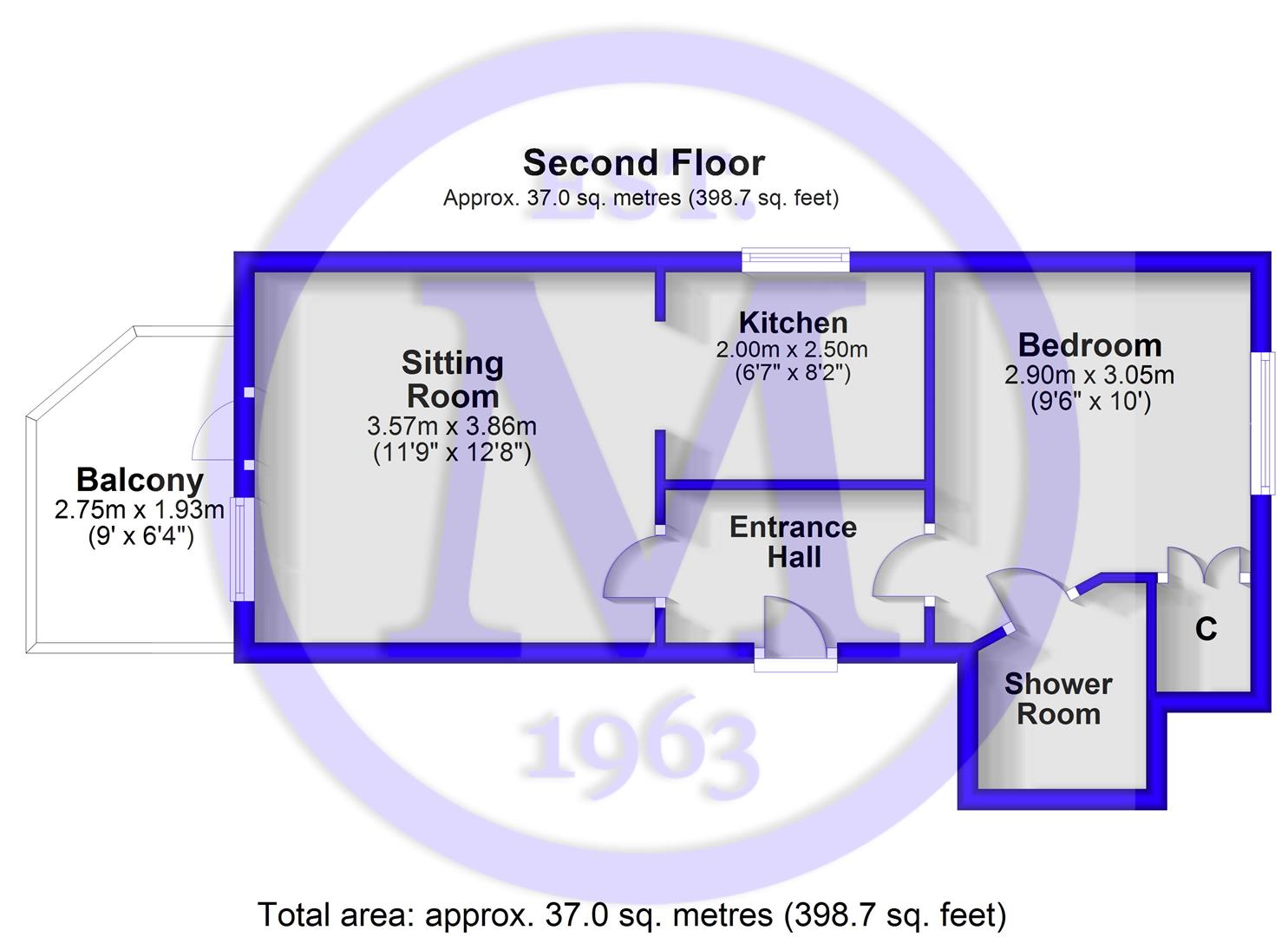 Entrance hall with a meter cupboard.