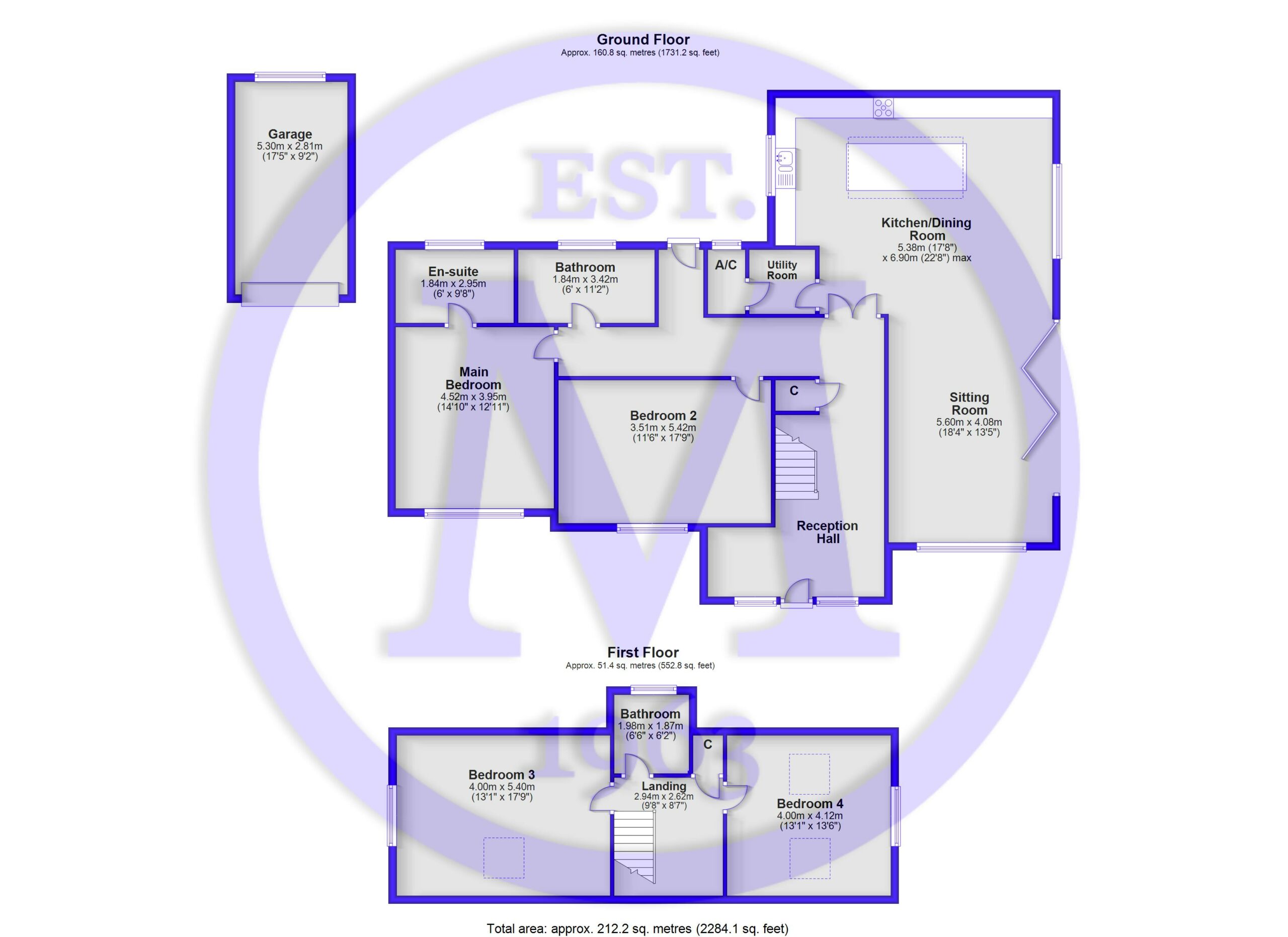 The ground floor family bathroom is finished to the same luxury standard as the en-suite and includes a walk-in double shower with thermostatic shower attachment, a chrome heated towel rail, a freestanding bath with a mixer tap and handheld shower attachment, a WC, a wash hand basin with a mixer tap over and storage beneath, and a UPVC window.